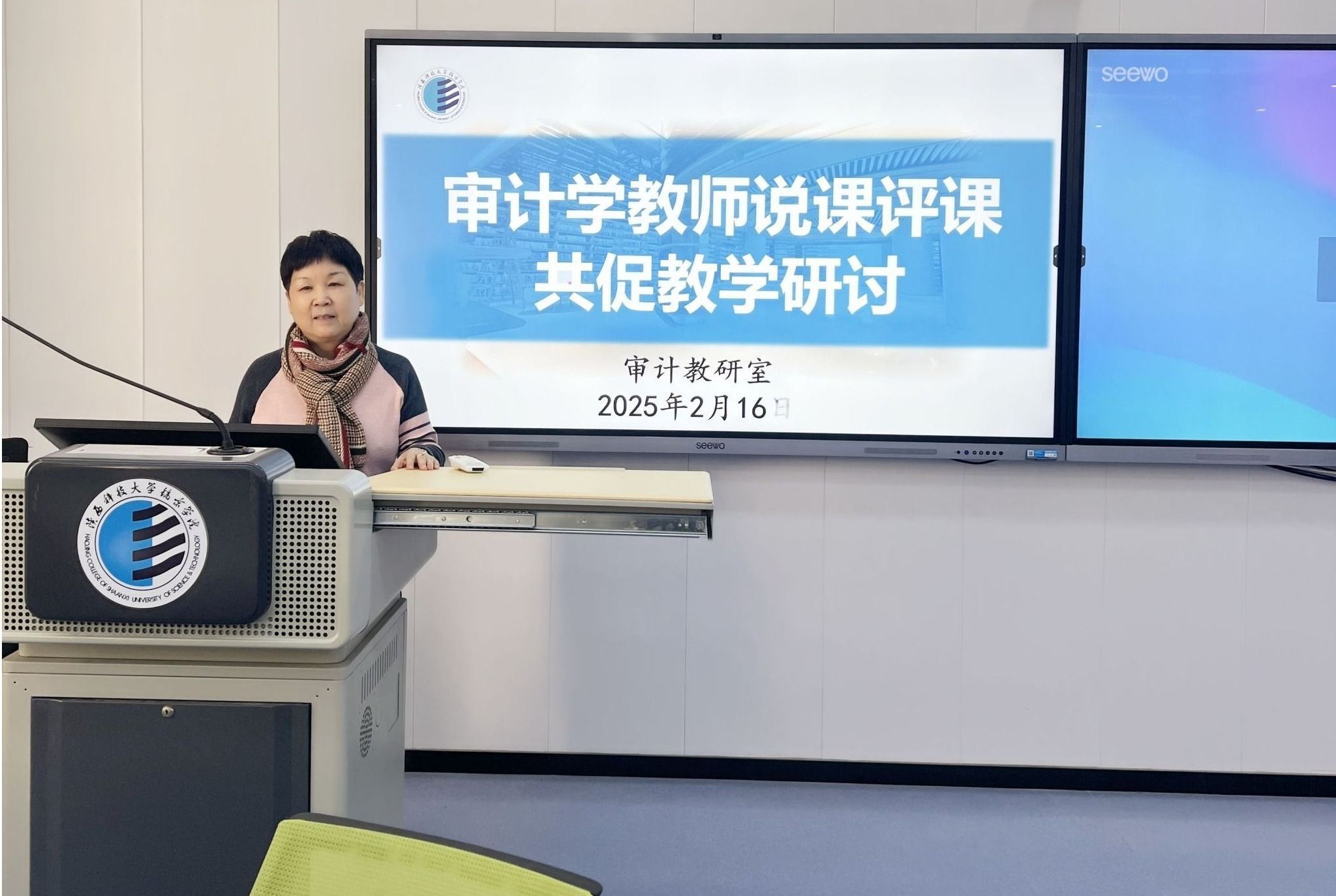 为提升教师教学水平,优化课程设计,促进教学经验交流,审计系于2月16日在教学楼216教室开展了2025年春季学期教师说课活动,审计专业带头人马焱教授及审计系全体专任教师参加会议。