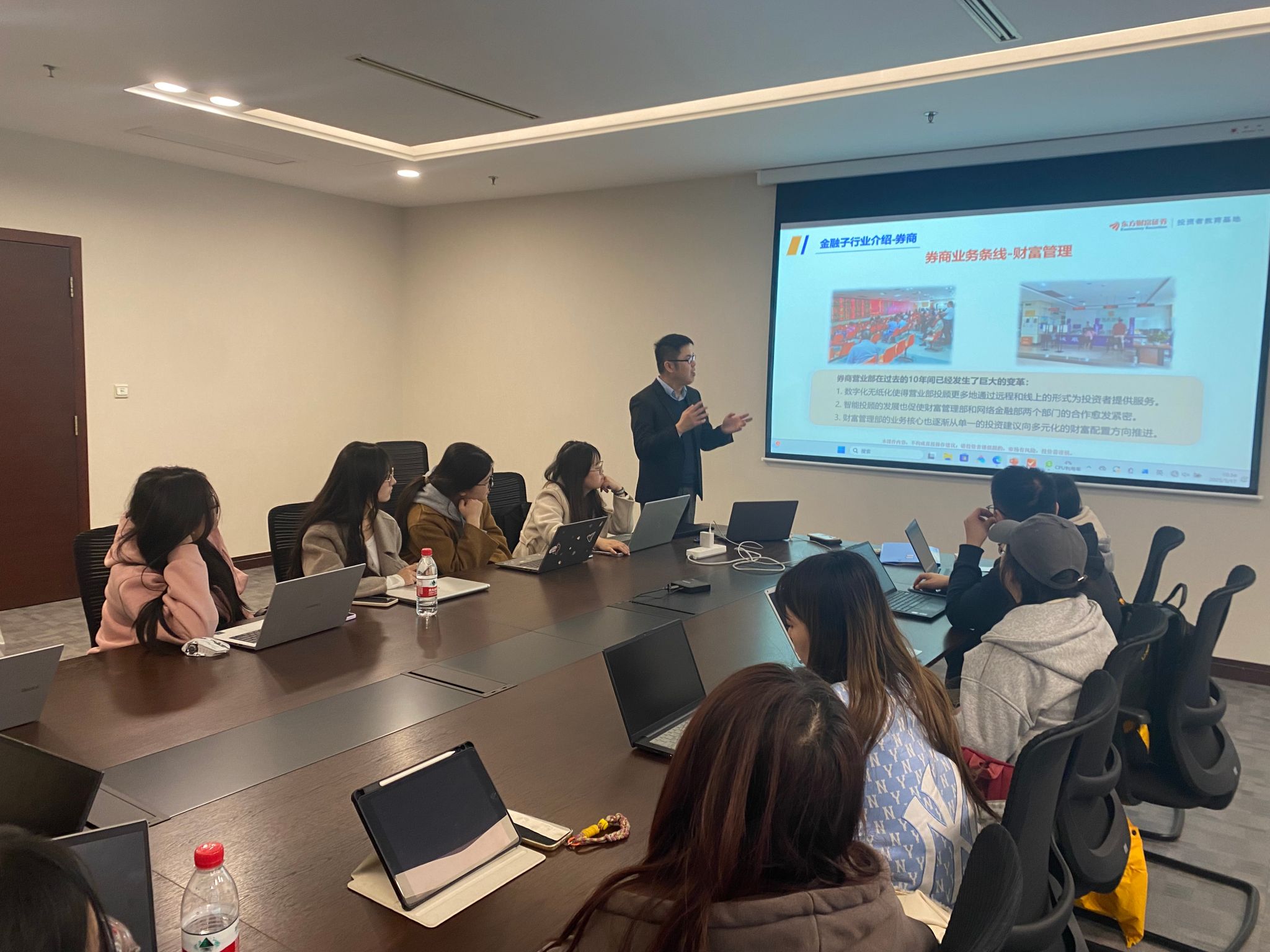东方财富证券股份有限公司成都分公司是东方财富信息股份有限公司(证券代码:300059)的全资子公司,总部位于上海。公司拥有证券经纪、证券投资咨询、证券承销与保荐、证券自营、证券资产管理、融资融券等全牌照业务,是全国性的综合类证券公司。同学们抵达成都分公司后,集团的负责老师为同学们详细介绍了金融行业中证券商、信托、银行等细分领域的相关知识,帮助大家搭建起系统认知。随后,师生共同走访了私募公司参观学习,公司总经理先是用通俗易懂的语言剖析了复杂的投资原理,还分享了不少实用的分析技巧,比如如何通过财务报表挖掘潜在的投资机会。在分享自身经历时,总经理提到从初入行业的懵懂新人,到历经市场沉浮成为资深从业者,一路不断学习、积累经验,时刻保持对市场的敬畏之心。