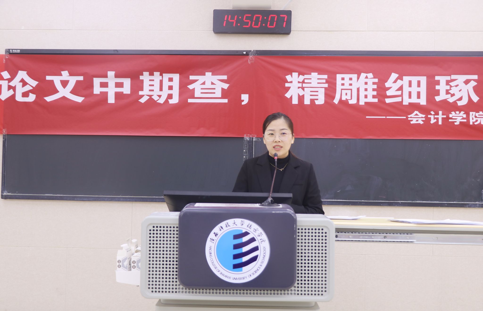 会议由审计学教研室论文秘书郭琛老师主持,教研室主任汪娇老师和姬雅楠老师担任主讲老师。会议伊始,郭琛老师详细介绍了毕业论文整体进度计划安排以及金沙城js93线路检测中心对于中期检查的相关工作安排和时间节点同时明确了毕业论文等各项资料提交的时间节点。她强调了时间管理的重要性,提醒员工们严格按照公司和公司的要求,合理安排论文写作进度,确保在规定时间内完成高质量的毕业论文。