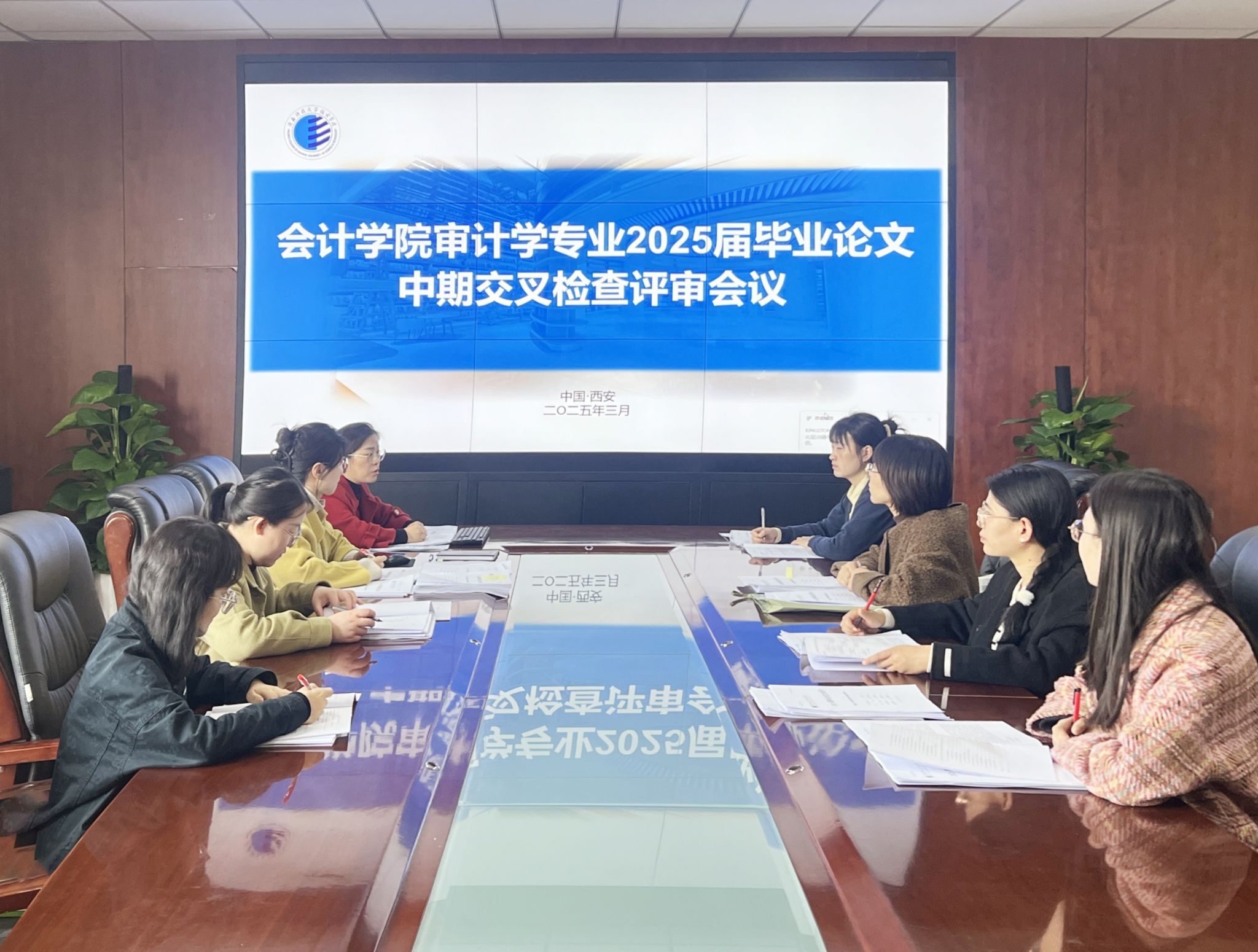 320日,所有教师按照要求召开了2025届毕业论文中期检查交叉评审会议,会议上老师们对非本人指导员工的论文进行详细评阅、详细批注出后续论文修改的建议以及方向。