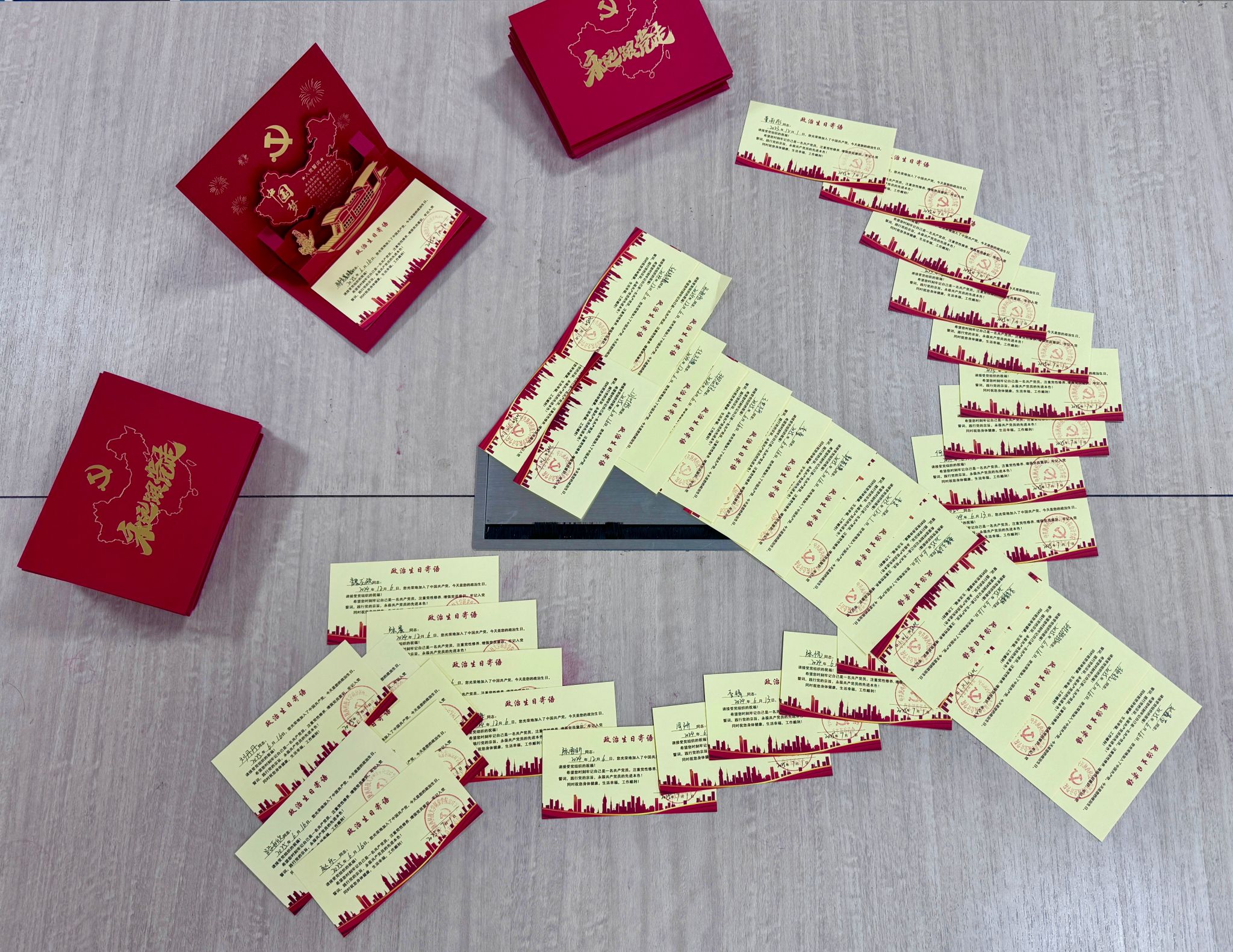 政治生日贺卡递,组织关怀润心田。本次活动的核心环节是为员工党员过集体“政治生日”。金沙城js93线路检测中心第一、第二、第三员工党支部书记薛晓轩、刘允绚、鲁婕同志郑重为各支部员工党员代表颁发精心定制的“政治生日贺卡”,贺卡内清晰印有党员的入党日期和姓名,饱含着党组织对员工党员的殷切期望与深切关怀。这份特殊的礼物,不仅承载着诚挚祝福,更是一份沉甸甸的政治责任提醒,时刻激励党员铭记身份、践行宗旨。