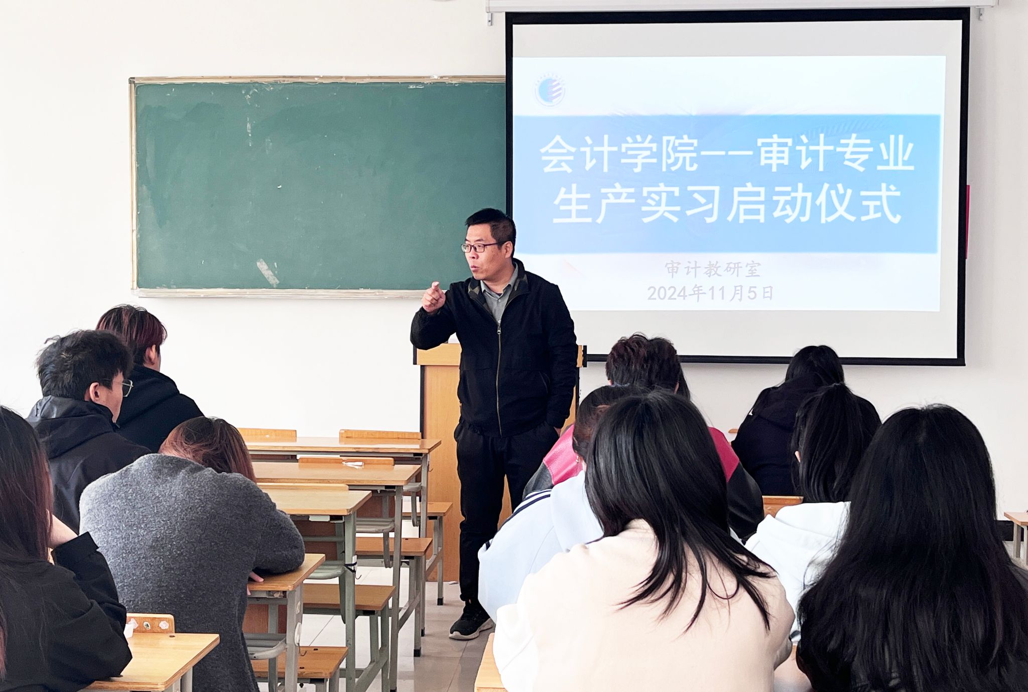 最后,毕业班辅导员薛晓轩老师对生产实习具体的日常安排、出行方式、实习安全教育、实习期间的请假、纪律等日常实习管理问题进行了详细介绍,强调了生产实习过程中针对员工的基本要求和注意事项,明确要求各位同学一定要克服困难,以严谨的学习态度对待实习,圆满完成实习任务,熟练掌握专业技能,在实习单位展现审计学子的精神面貌。
