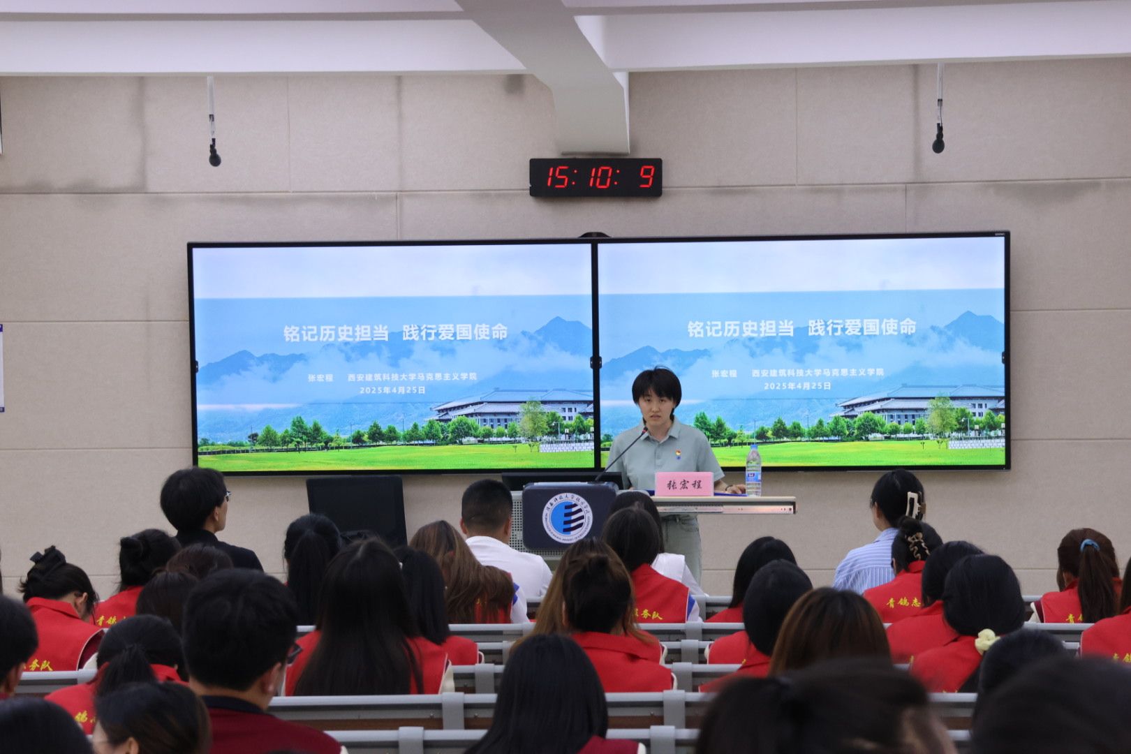 为深化爱国主义教育,厚植青年学子的家国情怀与责任担当,4月25日下午,公司特邀西安建筑科技大学马克思主义公司教授、副经理张宏程博士,开展“铭记历史担当,践行爱国使命”主题讲座。参会的有,员工党支部书记薛晓轩、刘允绚、鲁婕、员工会指导老师张瀚宇、青鸽志愿服务队指导老师葛梓涵、全体员工党员、员工会、志愿队员工代表。讲座由刘允绚主持。