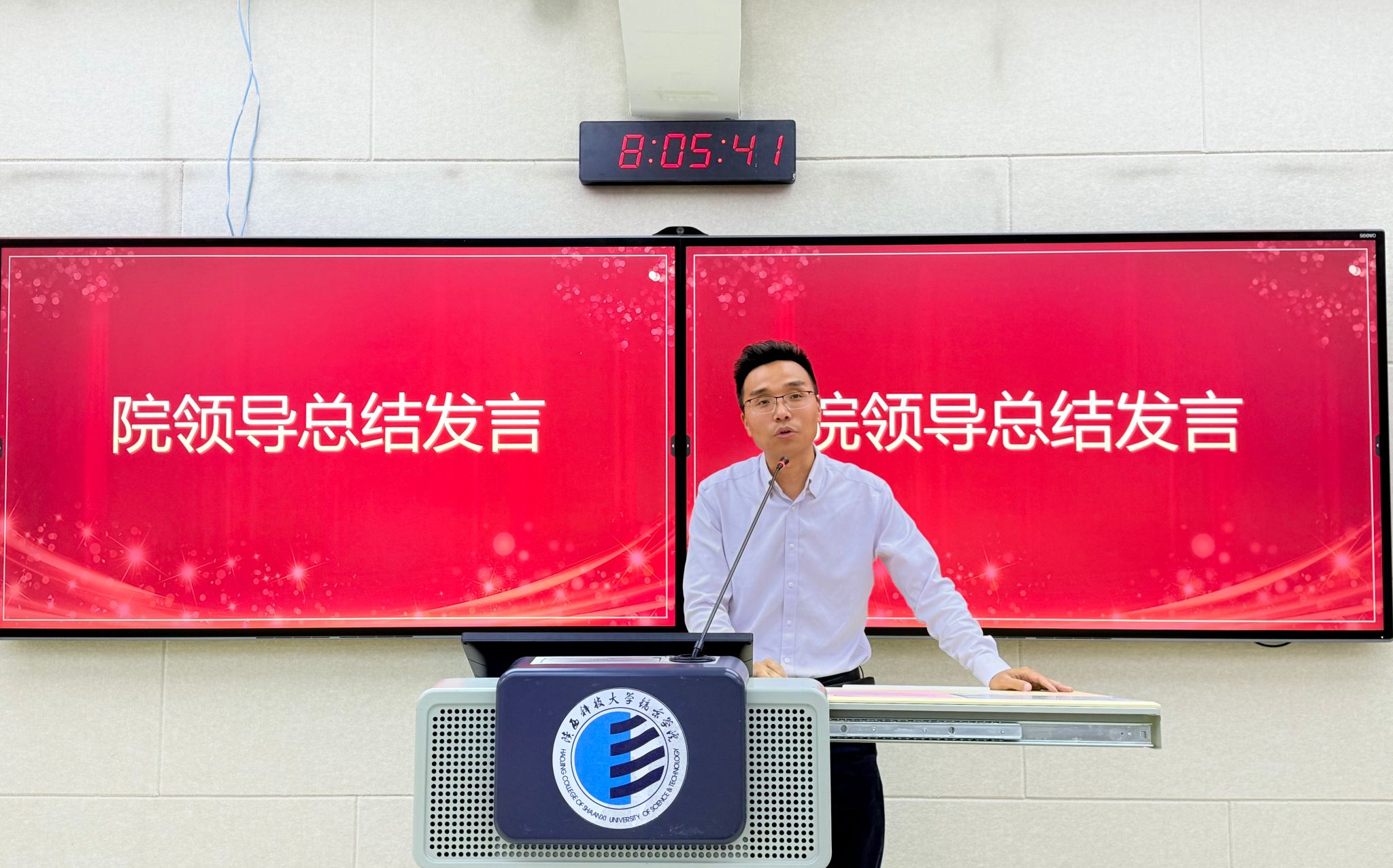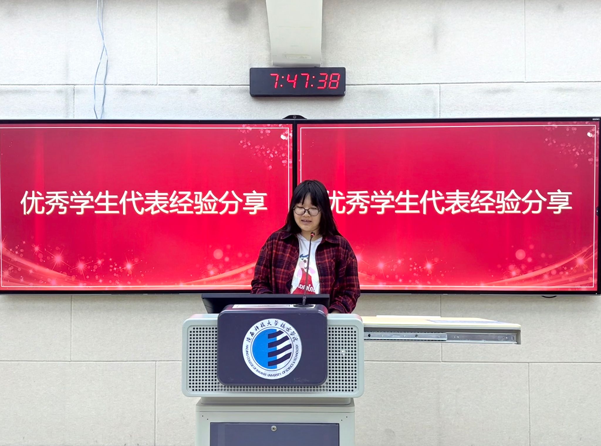 会议伊始,税收2301班刘梓涵、会计2304班魏鑫旺、财务管理2302班付雨潼三位同学作为优秀员工代表,结合自身备考实战经历,从精细化时间管理、真题循环训练策略,到听力速记技巧等方面进行深度剖析,为同学们提供了不同视角的学习思路,鼓励同学们“坚持与专注是突破的关键,希望大家化压力为动力,每天进步一点点”,生动鲜活的分享为在场同学提供了多维备考思路。