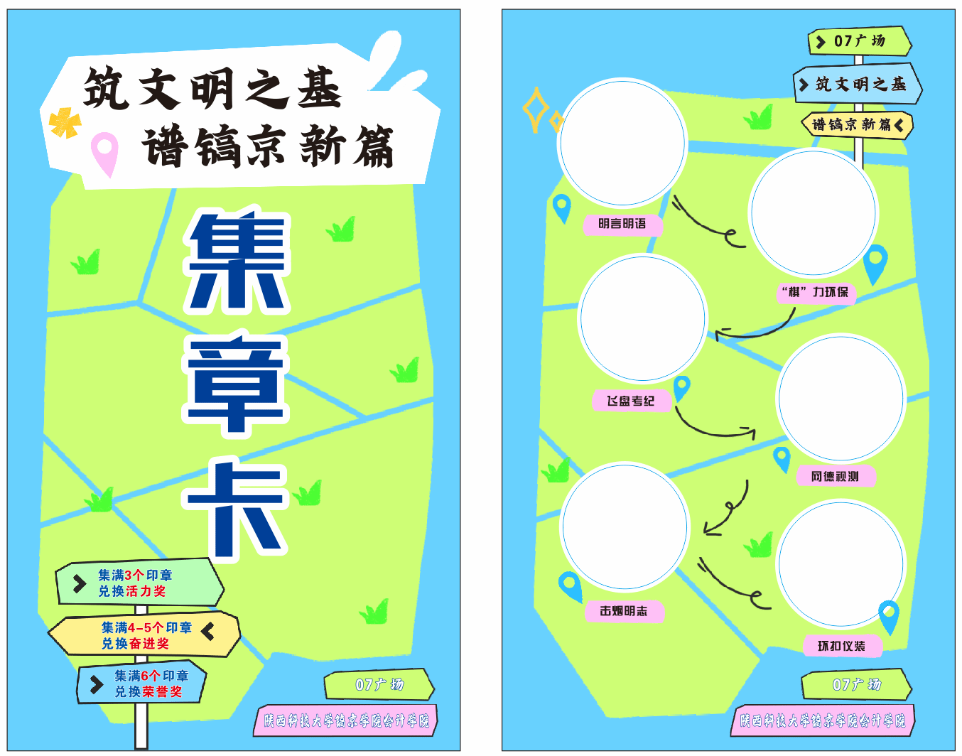活动期间,参与者抵达指定活动地点,领取活动集章卡,凭借此卡参与各项活动。每项活动完成后可在卡上盖章,凭借印章数量在活动兑奖处兑换相应的奖品。