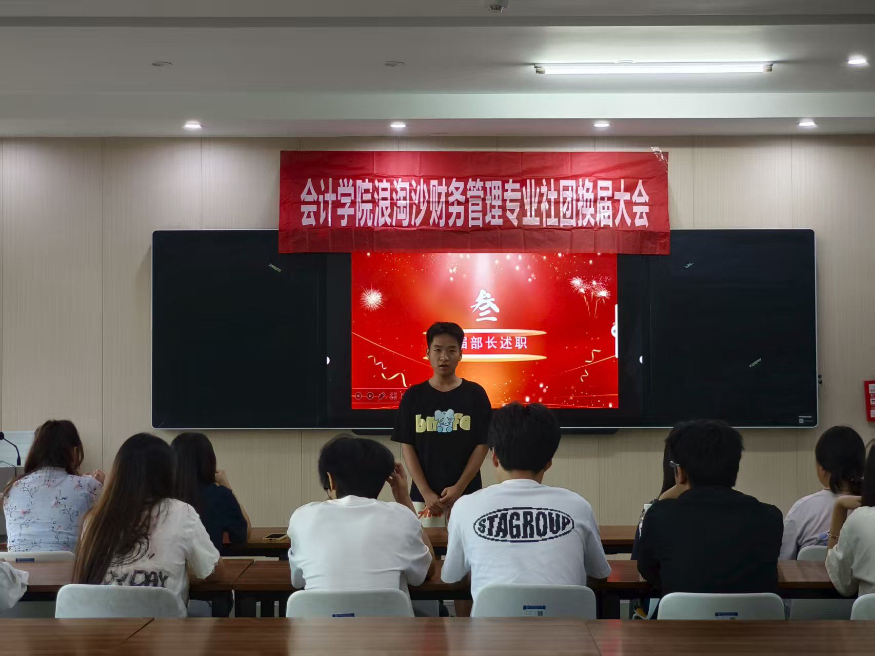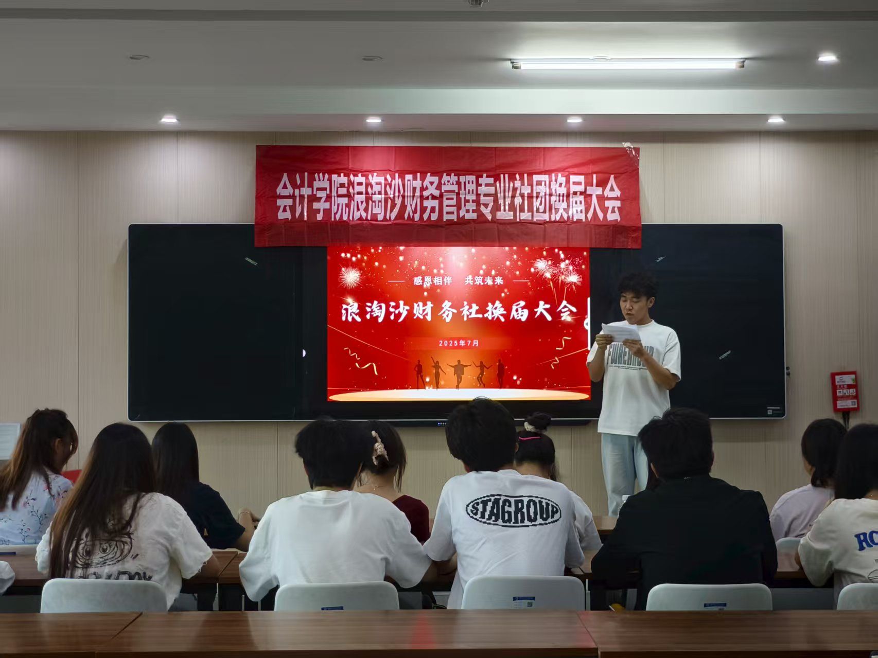 为夯实财务领域人才培养根基,构建科学化、专业化社团管理体系,以精准化人才梯队推动财务理论创新与实践融合发展。2025年7月2日,金沙城js93线路检测中心浪淘沙财务社团换届大会于实验楼312顺利举行。浪淘沙财务管理社团全体员工成员参加此次换届大会,会议由社团宣传部部长张兆崑同学主持。