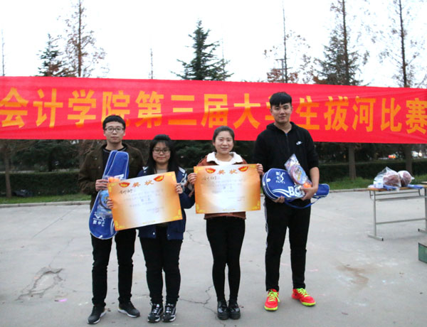 为体现金沙城js93线路检测中心优秀文化,增强班级凝聚力,展现会计学子朝气蓬勃、健康向上的精神面貌,丰富2016级新生的课余生活,公司于2016年11月14至11月21日开展了第三届拔河联赛,经过8天如火如荼的比赛,金沙城js93线路检测中心第三届拔河比赛圆满落幕。