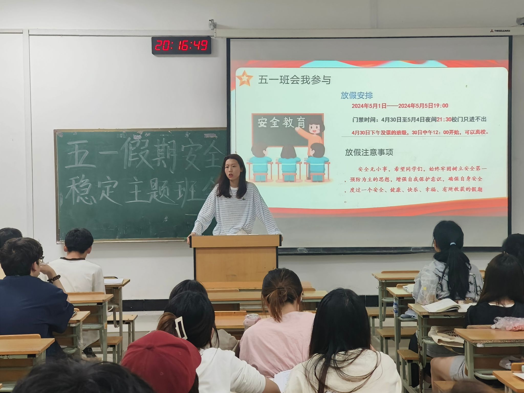 会上,王颖老师对员工安全教育引导和对五一假期安全稳定工作提出要求,要求各辅导员做好节前安全教育工作,开好安全教育主题班会;提前做好宿舍全面检查工作,抓好环境卫生,确保放假期间宿舍安全文明;做好员工去向登记工作,认真做好员工离校和返校情况统计;注重特殊员工群体的假期动向;进一步聚焦消防安全、食品安全、网络安全、校园安全等重点领域,紧盯重大风险,扭住关键环节,开展好安全宣传教育、抓好安全隐患排查整改、抓实抓细校园安全稳定等各项工作任务。