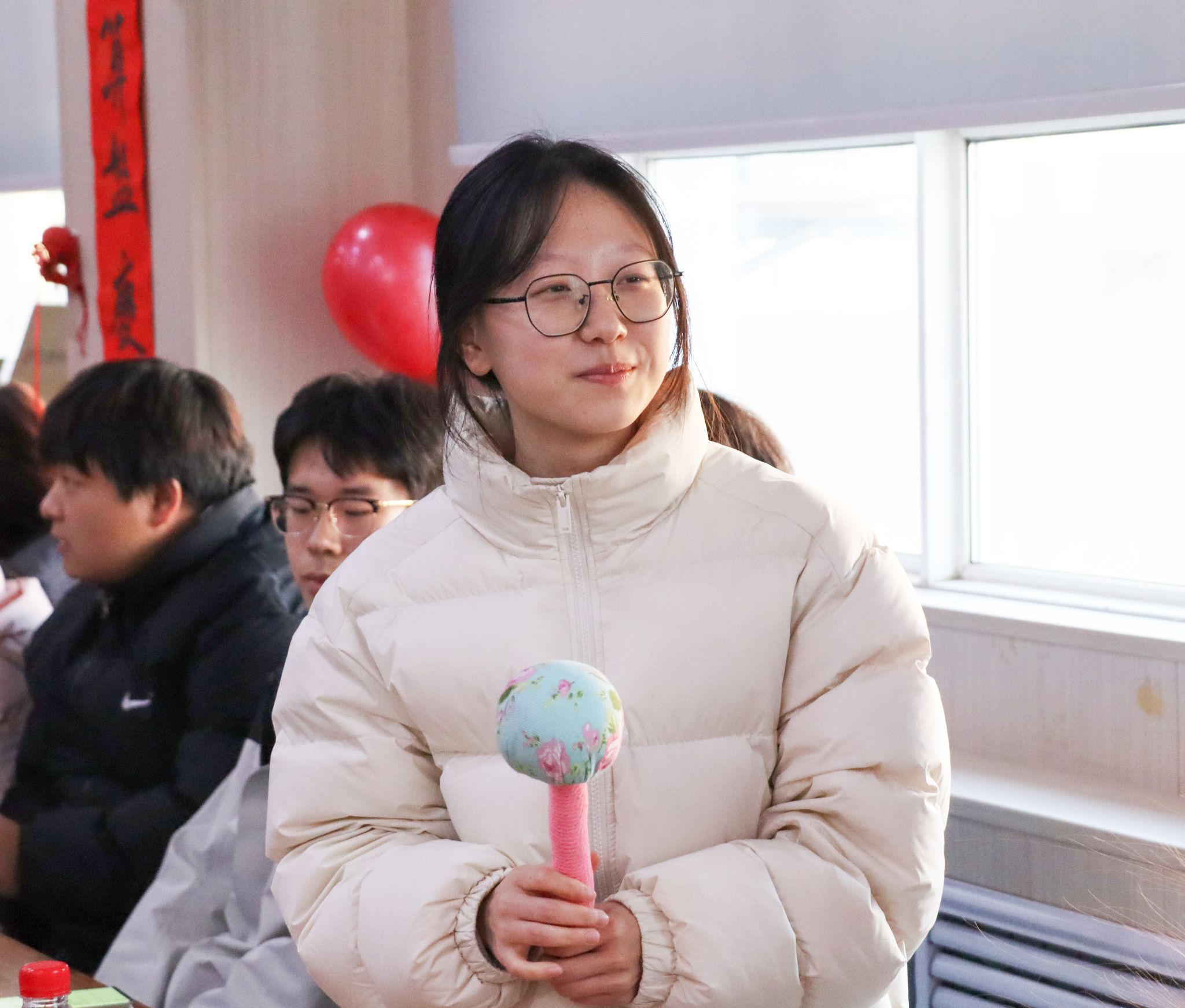联欢会第四项是联欢会的高潮部分---文娱活动“击鼓传花考考你”,考题由专业基础知识和专业知识构成,鼓声响起花锤飞走,代表着知识与欢乐的 “花” 在同学们手中依次传递,充满了紧张与期待,准备的奖品随同阵阵掌声不断落到企业领导和各位同学老师手里。