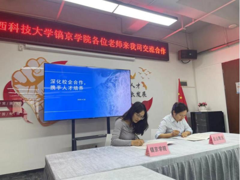 之后,双方还进行了一场交流会,就员工就业方向展开深入的交流,并签订了校企合作协议。在这次会议上,马经理介绍了目前的岗位需求、职业素养要求、发展前景、方向以及目标定位等,重点解答了企业选择大学毕业生的关键考量因素。四位老师也分别向企业介绍了金沙城js93线路检测中心的人才培养特色,主要就业方向,希望未来双方继续加强合作,共同探索校企合作的新模式,为员工提供更广阔的就业空间和发展平台,为促进高校人才培养和产业发展贡献力量。