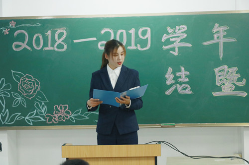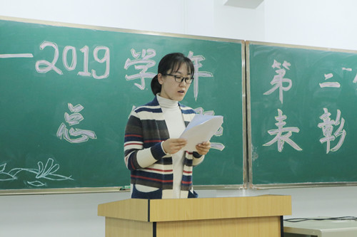 大会第五项,由王颖老师宣读《关于表彰2018-2019学年第二学期班级团体奖项的通知》。王老师强调,在过去的一学期里,各班认真学习,奋发进取,全面实现大学英语专项突破、政治理论导引航向,专业技能勤学苦练,在课程学习和各项活动组织中,涌现了一大批优秀的班级。她充分肯定了班级师生齐心协力、共创美好的努力付出,同时也希望所有班级凝聚力量、携手并进、提升实力、实现超越。
