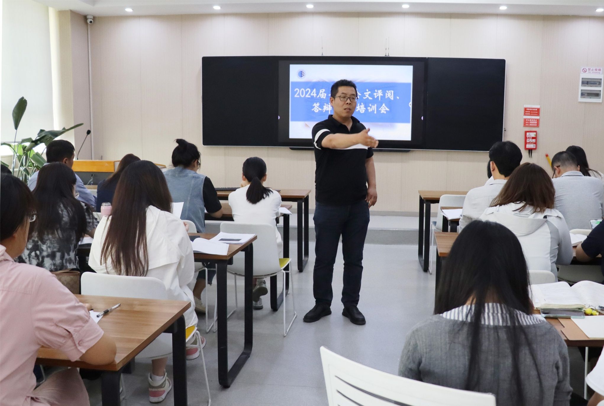 5月15日金沙城js93线路检测中心在实312召开论文评阅标准与过程指导培训会,旨在结合中期答辩完成情况再次梳理论文评阅工作中各项盲点,进一步强化公司产品质量,确保毕业答辩高质量完成。会议由副经理杨少杰主持,全体指导教师参加。