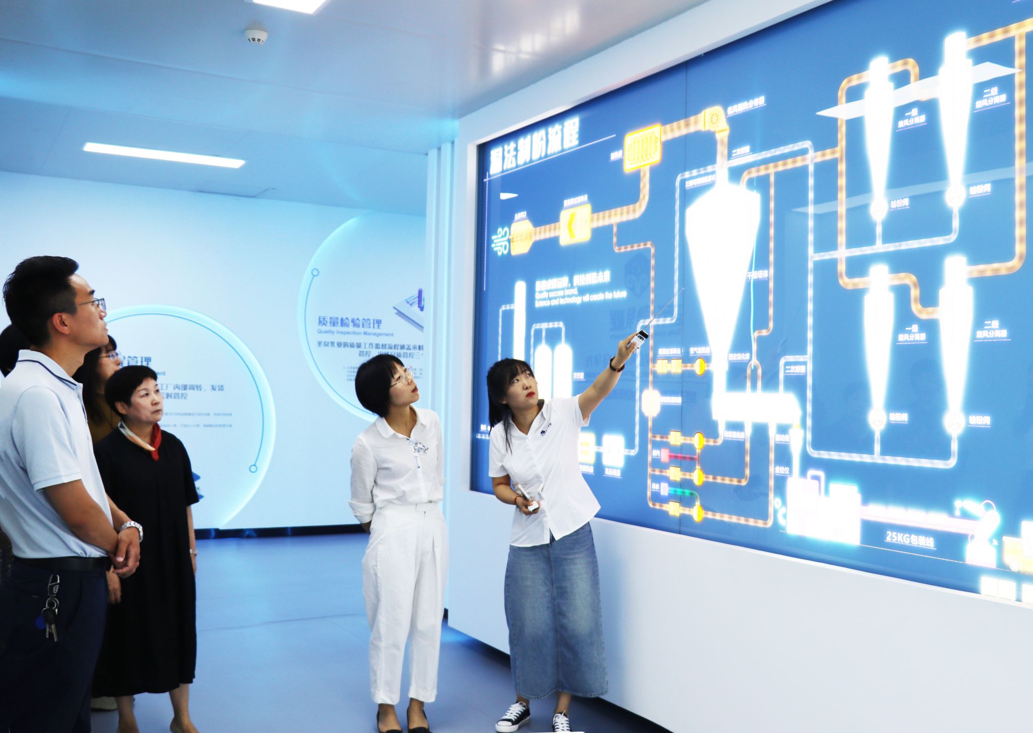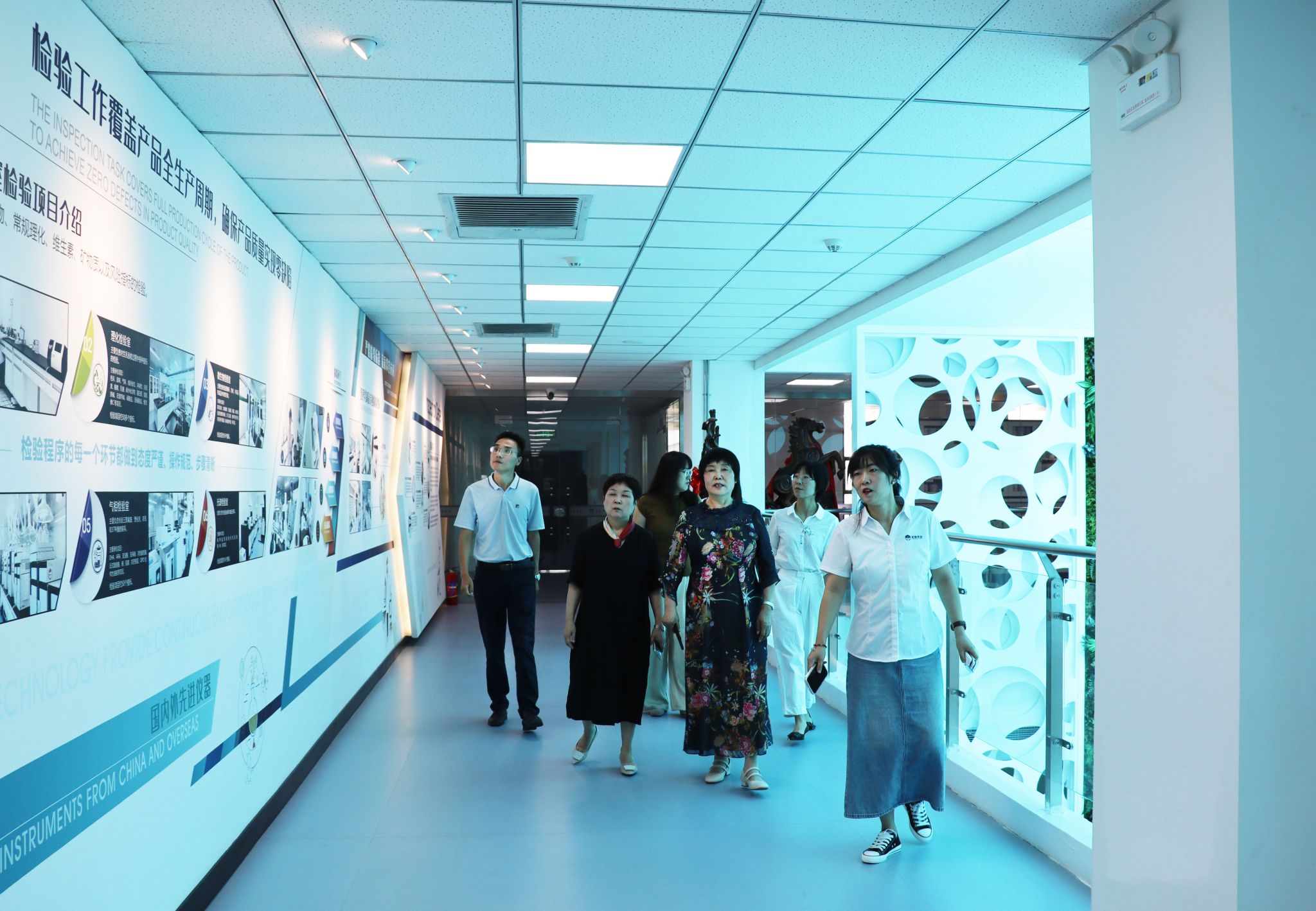 随后,一行人员又参观了生产中心、技术研发中心、检验中心和分装中心。高度自动化、智能化和一体化操作流程,无不体现现代科技在企业中的重要作用。
