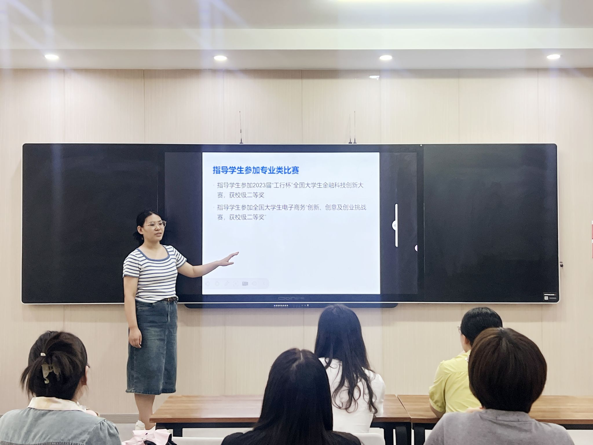 青年教师们依次围绕教学、科研、员工工作、竞赛指导及企业挂职锻炼等多个方面进行了全面而深入的汇报。教学方面,青年教师们以创新的理念和方法,深入挖掘课程内容,拓宽知识边界,致力于提升教学质量和员工的学习体验。科研上,青年教师们积极参与学术研究,主持和参与课题项目,以实际行动诠释了知识的力量和创新的精神。在员工工作方面,青年教师们以细心的关怀和指导,助力员工全面成长,为员工的学习和生活提供了全方位的支持。竞赛方面青年教师们以专业的知识和创新的思维,带领员工团队屡获佳绩。在企业挂职锻炼的实践中,青年教师们以开放的心态和积极的姿态,丰富了自身的教学和实践经验。他们在企业的挂职中学习先进的管理经验和实践技能,为教学内容的更新和实践教学的深化提供了鲜活的素材。