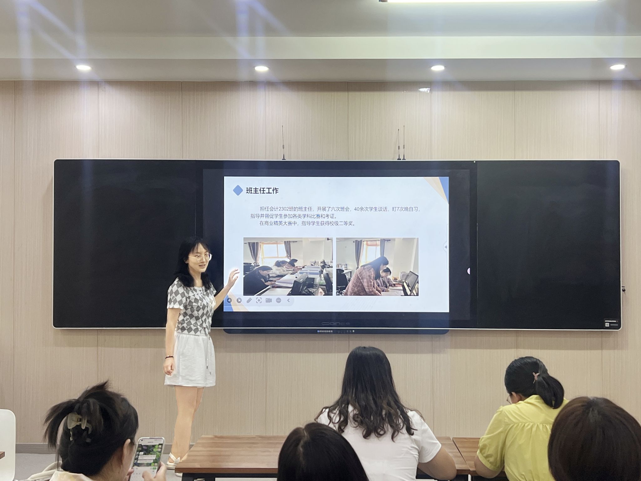 马老师和姬老师在会议结束时对青年教师们的表现给予了高度评价,并鼓励她们继续发扬勇于创新、敢于担当的精神,为审计学科的发展贡献力量。通过这次考核汇报,青年教师们不仅展示了自己的专业成长和对教育事业的热爱,也明确了未来努力的方向。