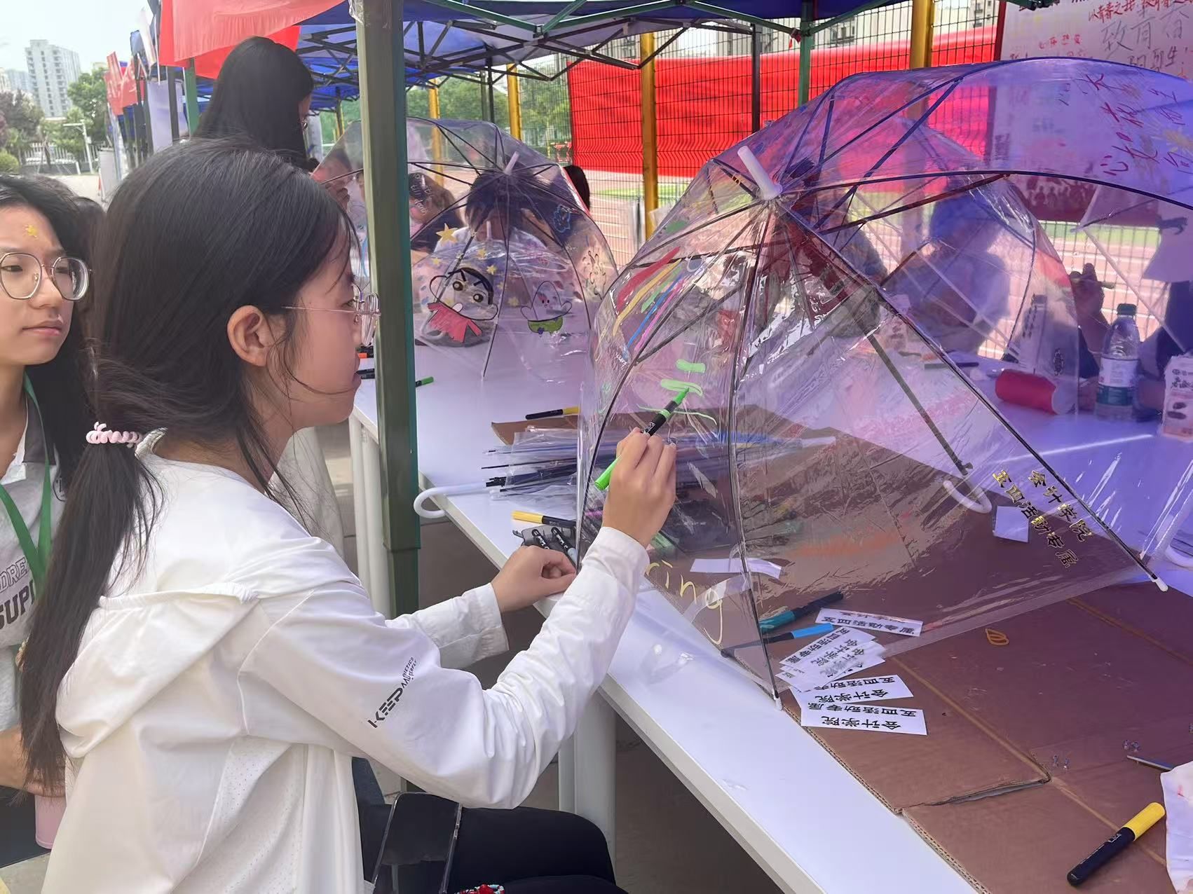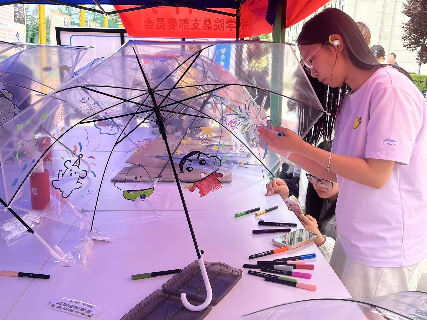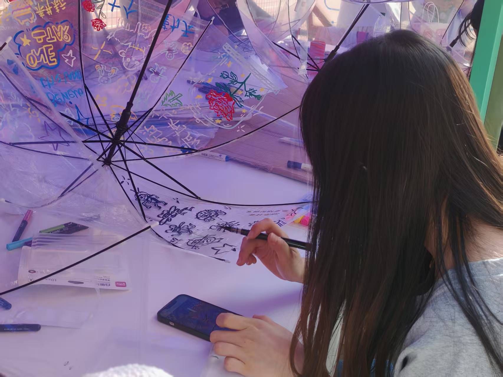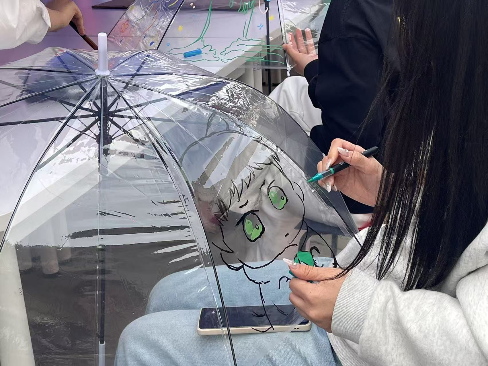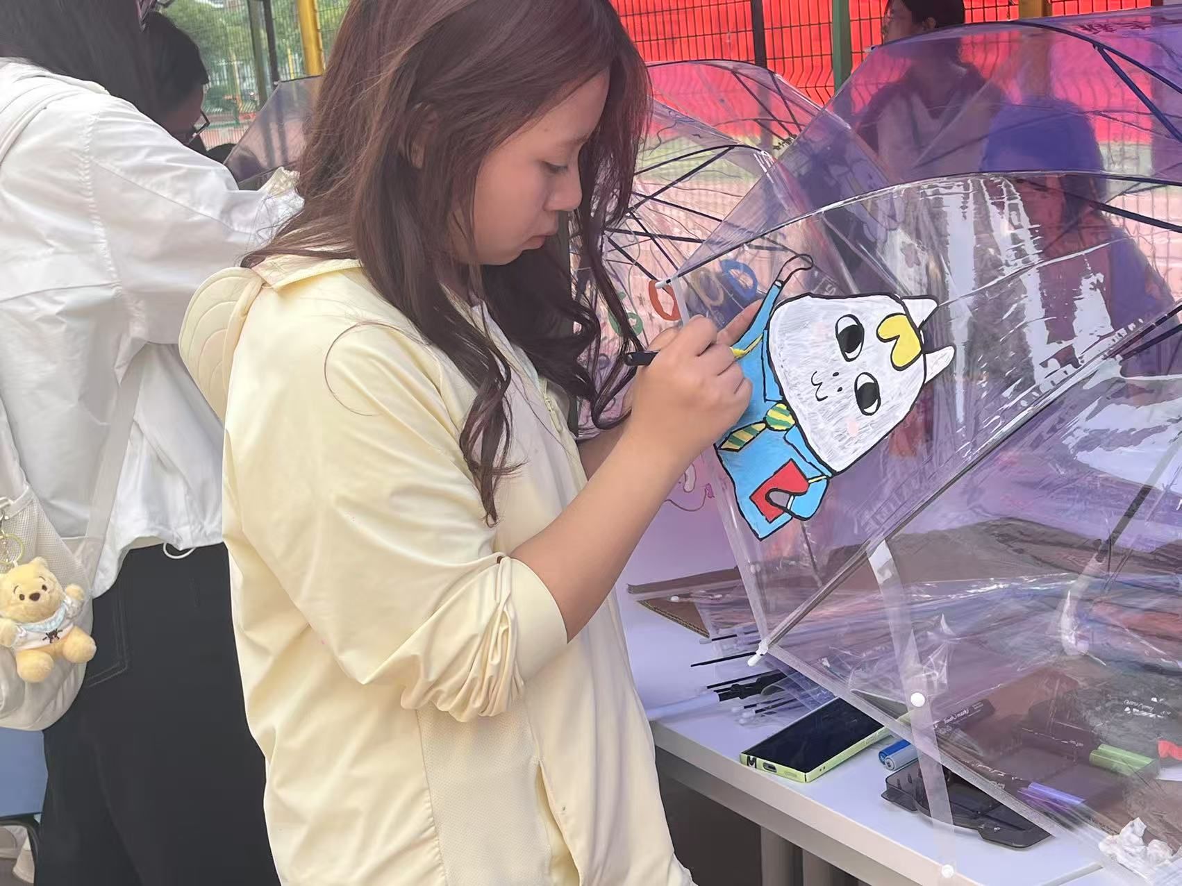 1919年5月4日,三千青年挺身而出,以热血冲破旧时代的重重阴霾;而在今天的活动现场,师生们拿起画笔,让历史透过透明的伞面,与当代展开一场跨越时空的对话。这场跨越百年时空的精神对话,是以艺术之名对五四薪火的创造性传承。当画笔触碰伞面,不仅是传统技艺的现代诠释,更是青年一代对“爱国、进步、民主、科学”核心内涵的具象化传承。伞面虽小,却承载着同学们的梦想与深厚情怀,每一把伞都是对五四精神的传承与创新。