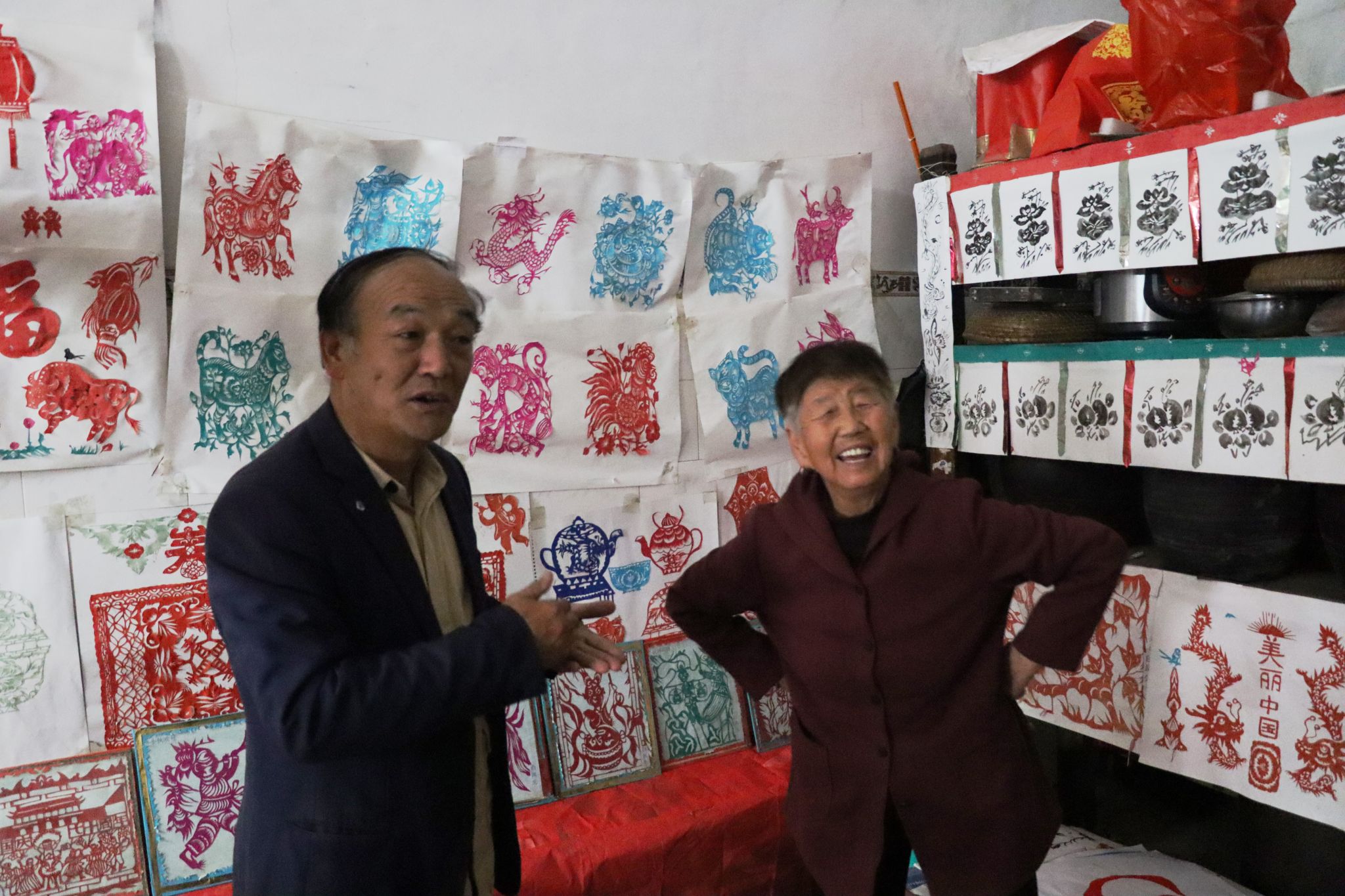 下午,在政府工作人员的陪同下,调研团队实地调研了黄陵县阿党镇北村,并拜访了非遗传承人白凤仙。白凤仙是一位优秀党员,更是县级剪纸非遗代表性传承人。幼年时,在母亲的悉心教导下,她逐渐掌握了剪纸技艺,传承了母亲精湛的技艺,并不断开拓创新。她的剪纸作品精巧绝伦,栩栩如生。白凤先是黄陵县优秀传统文化的真正践行者,她积极组织村中各类文化活动,2019年被评为黄陵剪纸传习示范户。在她的带动下,一大批剪纸爱好者、各类媒体和研学团队纷纷前来学习观摩。