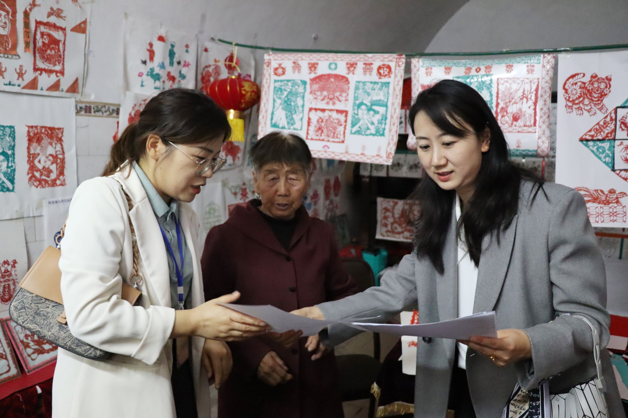 调研团与白凤先进行深入交流。白奶奶迫切希望能借助产学研合作平台将剪纸艺术带出黄陵,更希望能将她的非遗剪纸艺术带入课堂,培养年轻一代对剪纸的兴趣与技术,使这项宝贵的文化遗产得以延续与创新。