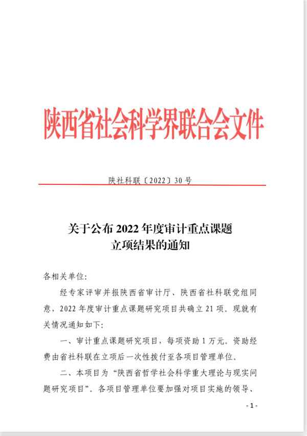 4月15日,陕西省社会科学界联合会《关于公布 2022 年度审计重点课题立项结果的通知》(陕社科联〔2022〕30 号)文件公布了2022 年度审计重点课题研究项目立项情况,共立项21项,公司获批1项。为深入贯彻习近平新时代...